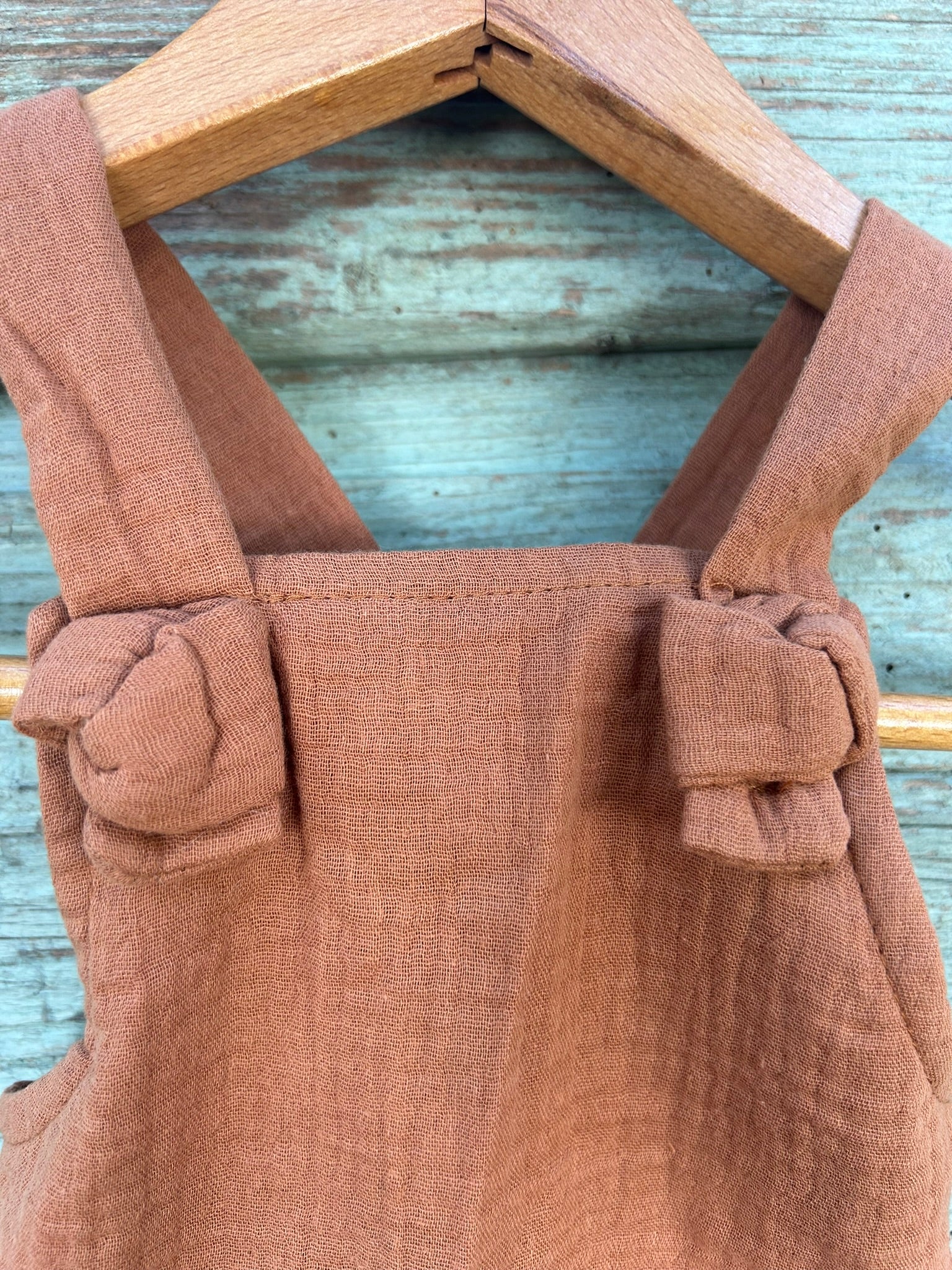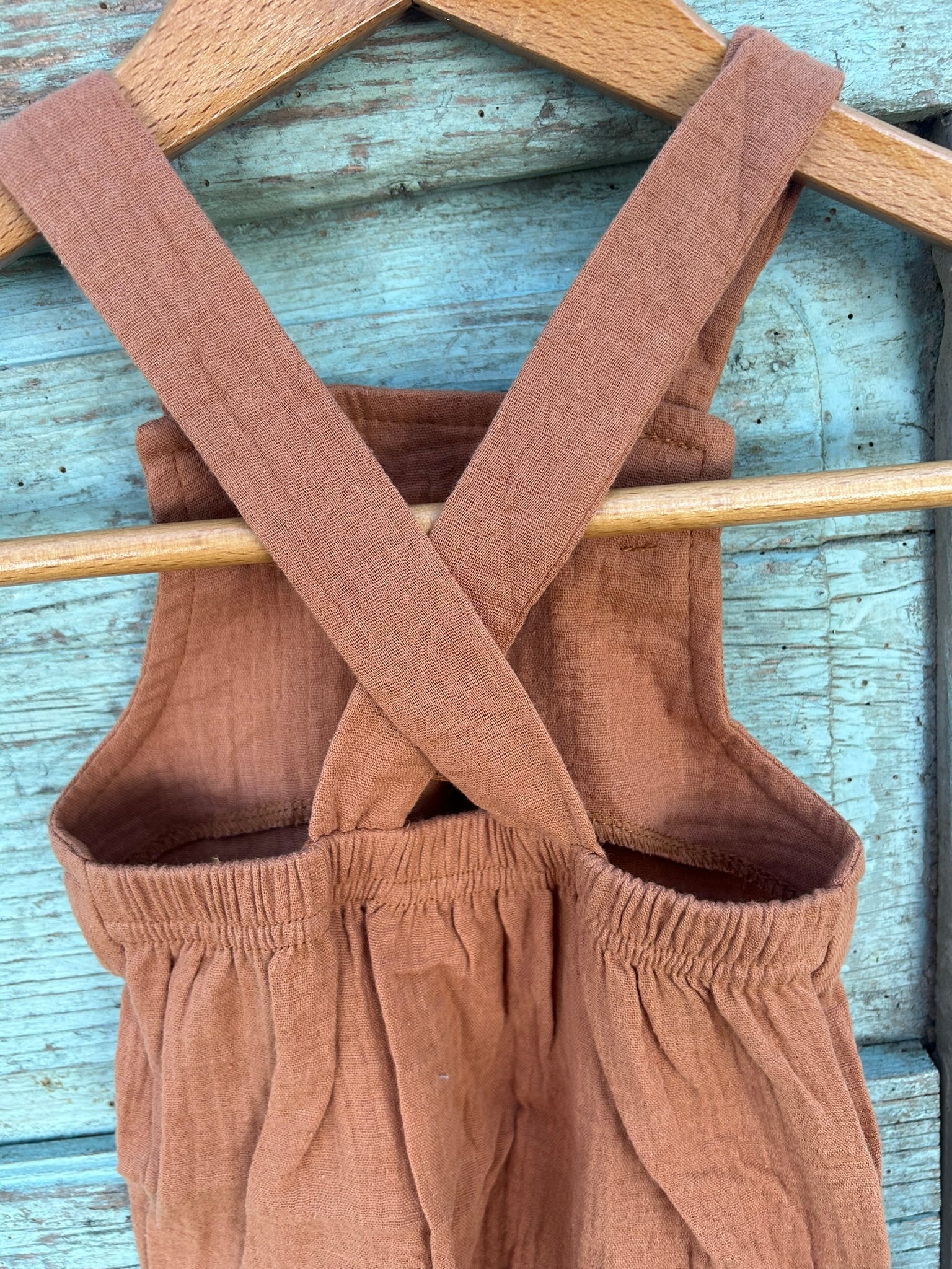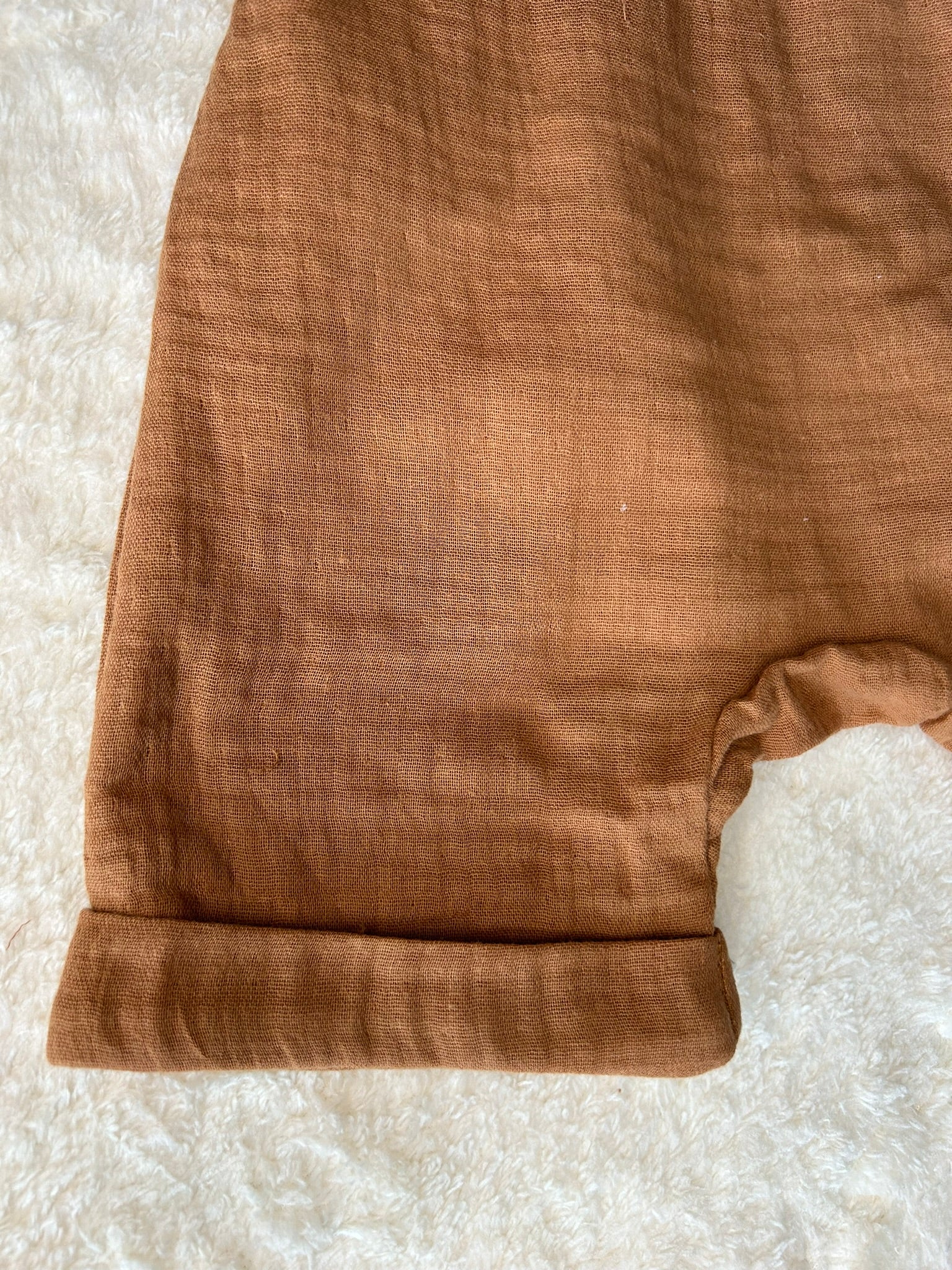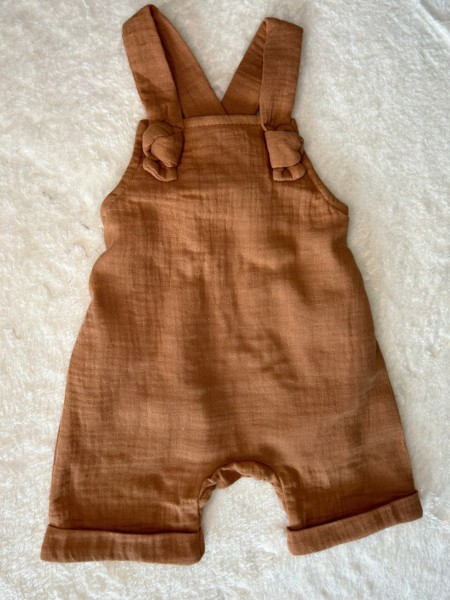 Jednodelni treger šorc u braon boji, lagan, zanimljivog kroja, udoban i kao takav predstavlja idealan komad koji naši mališani obožavaju.