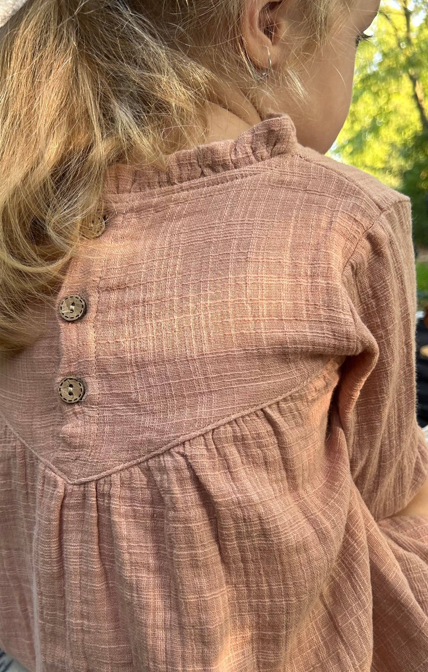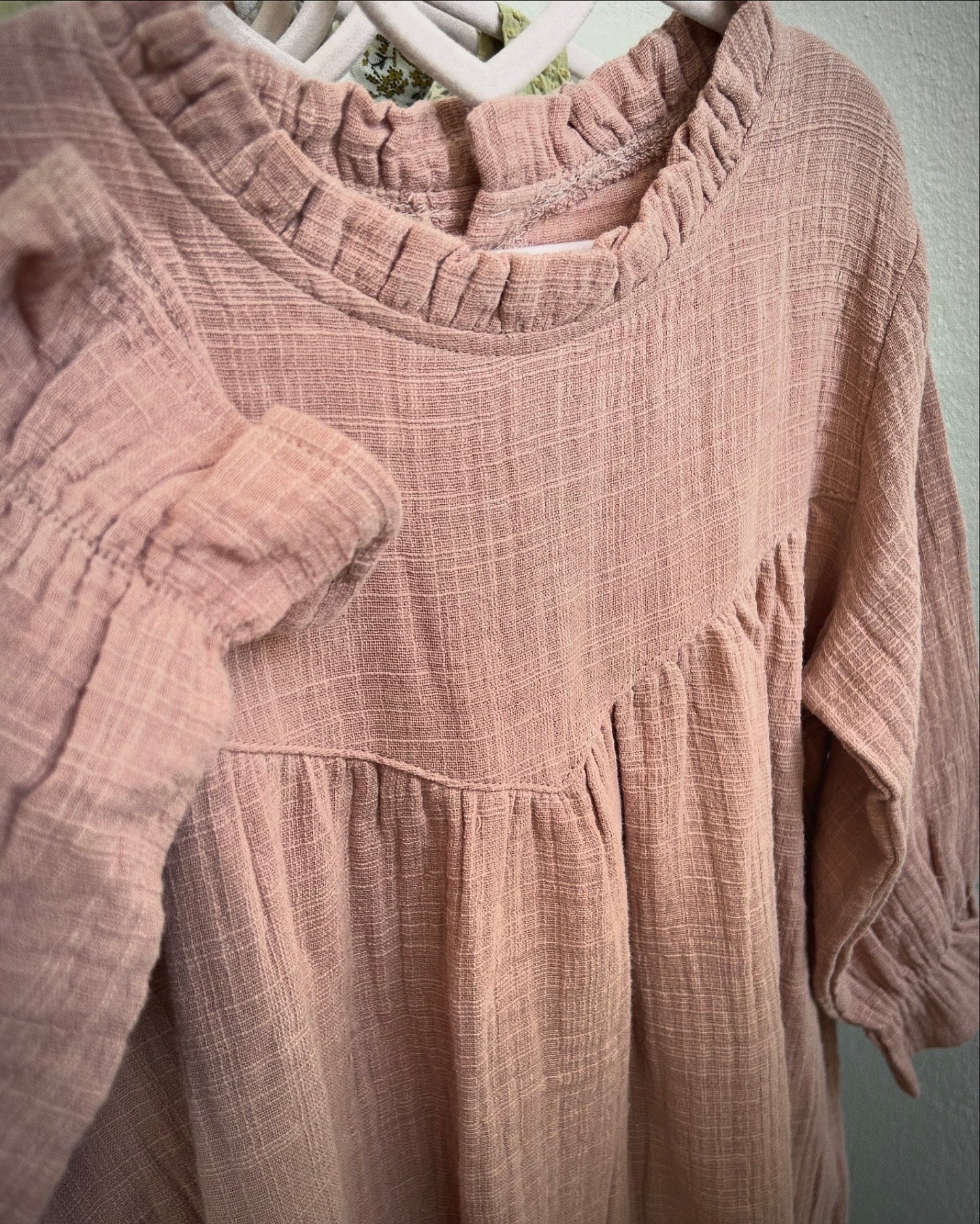 Lagana haljinica mešavine lana i pamuka u braon boji