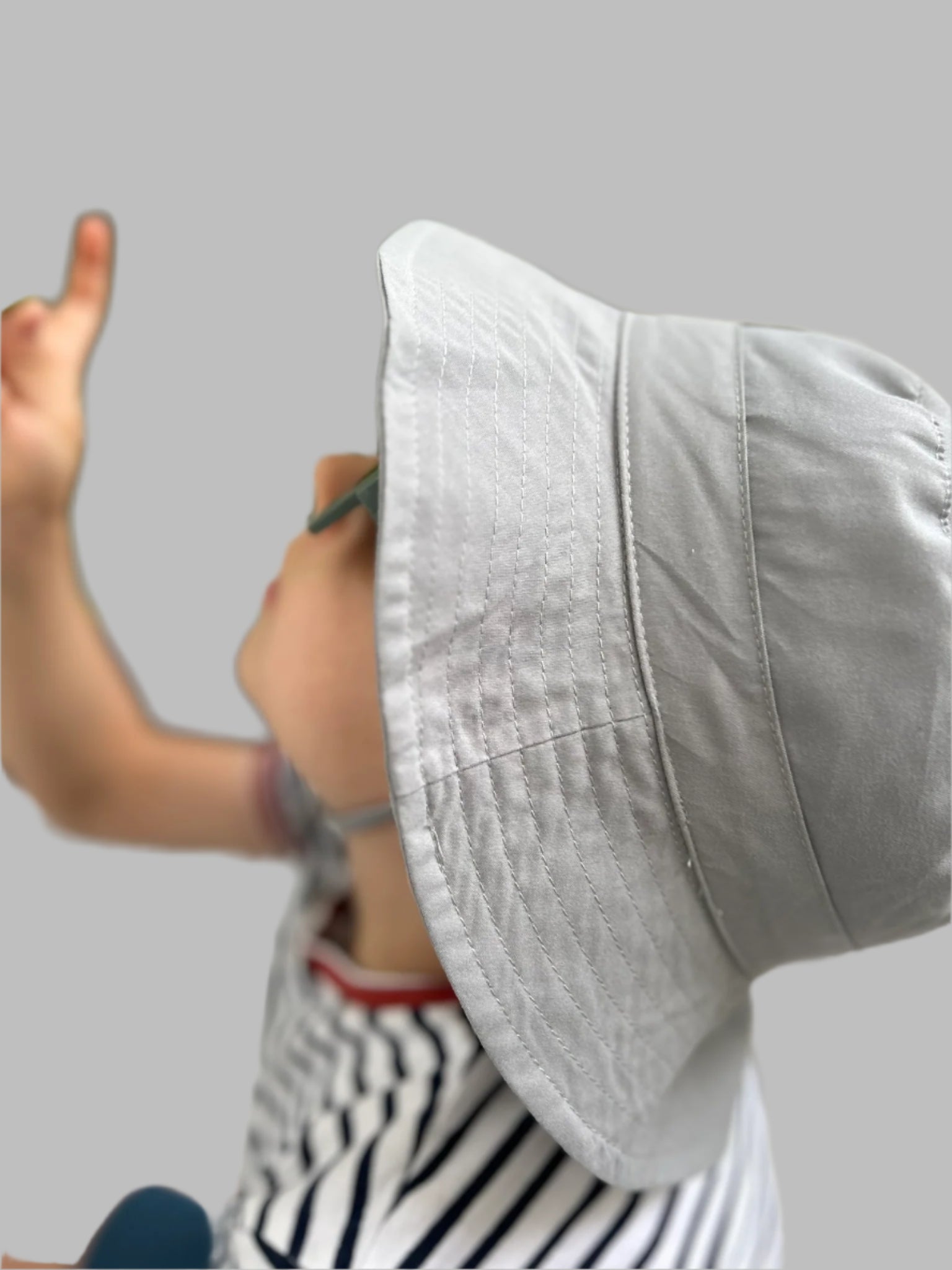 Šeširići u tri nijanse, sa učkurom pozadi radi podešavanja i vezicom ispod vrata. Dostupni u dve veličine -S (6-24M) I M (2-4Y).