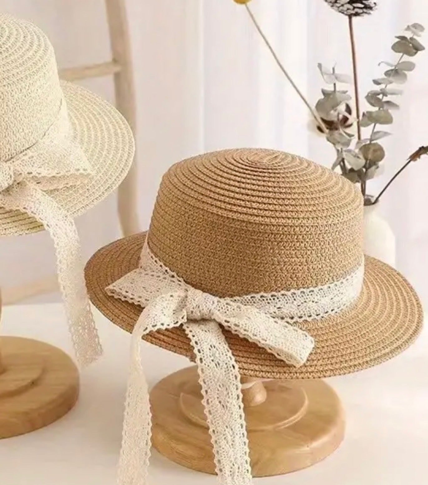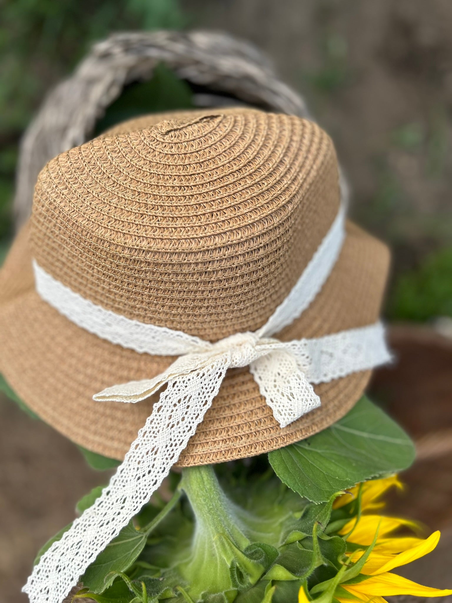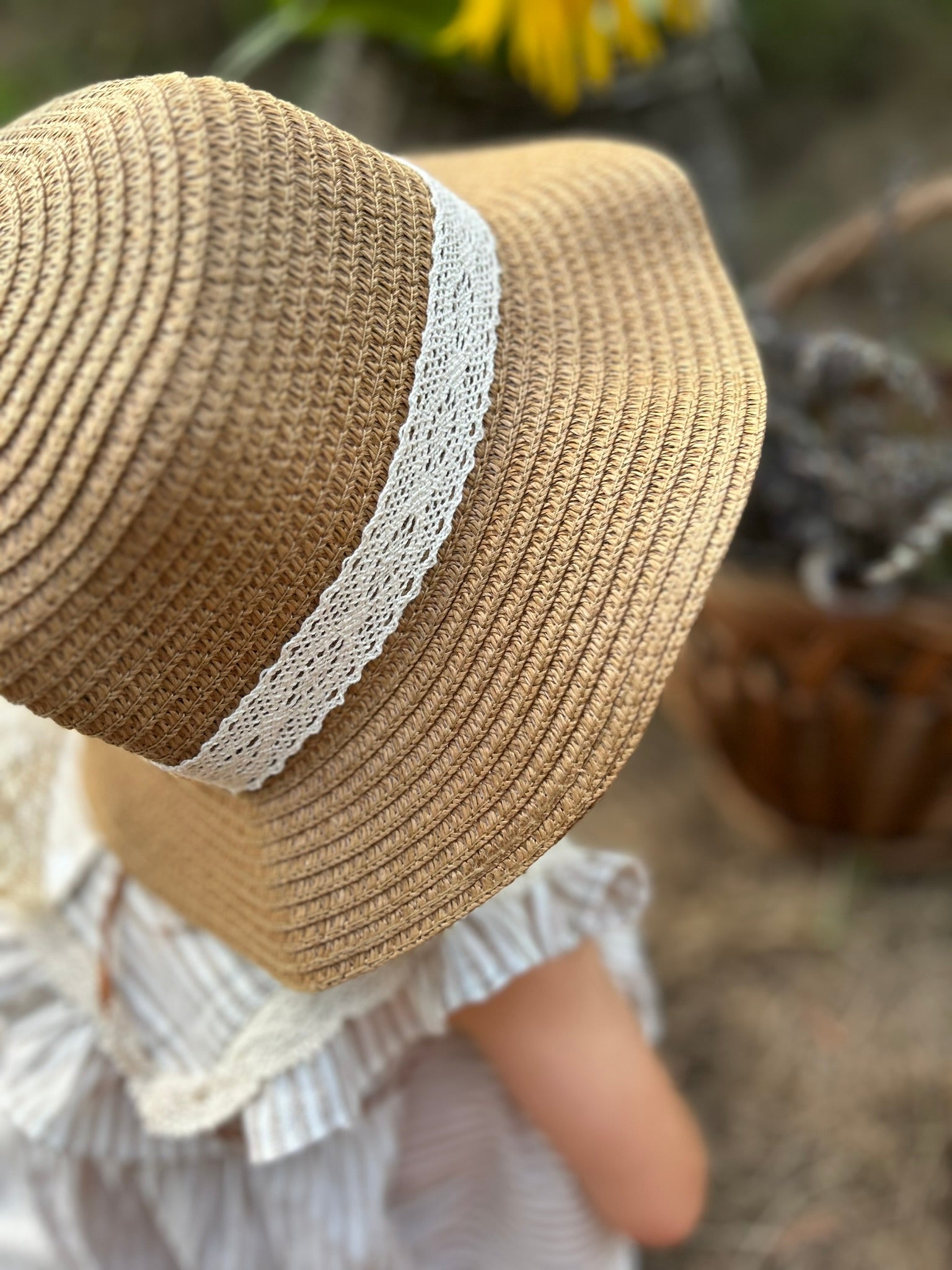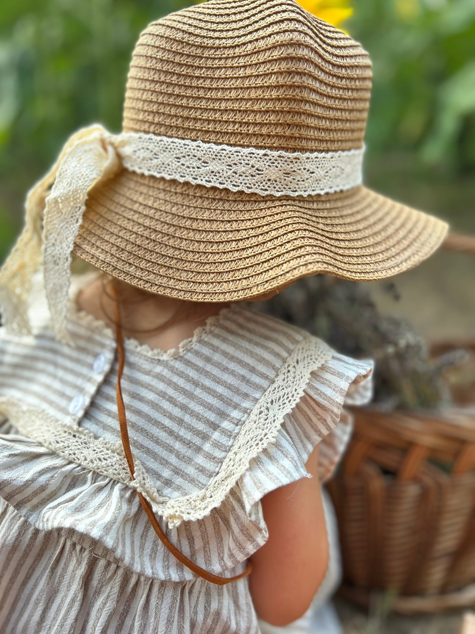 Šeširić pleteni sa lepom čipkastom mašnom u M veličini (1-3Y).
